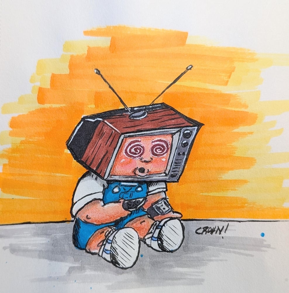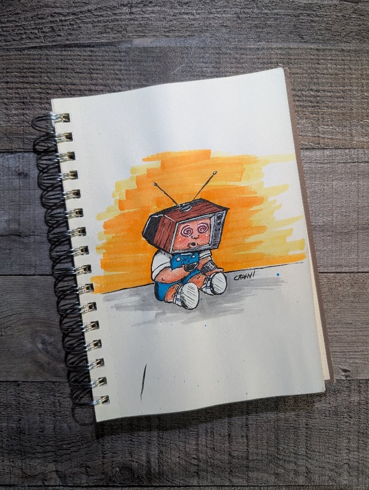 My take one one of my favorite Garbage Pail Kids designs, TV Stevie is on 5.5x8.5" quality sketch paper. Pencil and ink, alcohol markers and colored pencil.